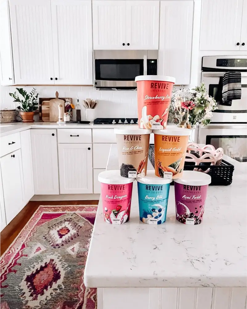 I’m a smoothie lover through and through, so I’m always excited to try new flavors. Revive Superfoods is a subscription service that allows you to choose your variety of flavors primarily based on health goals. Then, they prepare and ship the smoothies for you. When you receive the smoothie, all the ingredients are perfectly portioned inside the cups, all you have to do is add your liquid of choice and blend.
