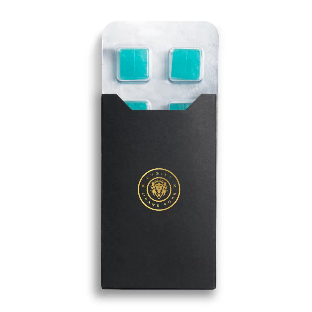 Rugiet Ready is a lozenge form that dissolves under the tongue (i.e. a sublingual). Sublingual medicines absorb faster than pills and aren’t slowed down if you eat. In just 15 minutes, Rugiet gives you real-time results – that’s up to 5x faster than typical ED medications. The active ingredients in Rugiet maintain the body’s performance for up to 36 hours.